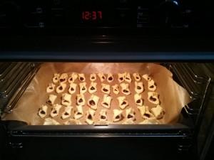 4. Gotowe ciasteczka układamy na blaszce wyłożonej papierem do pieczenia.