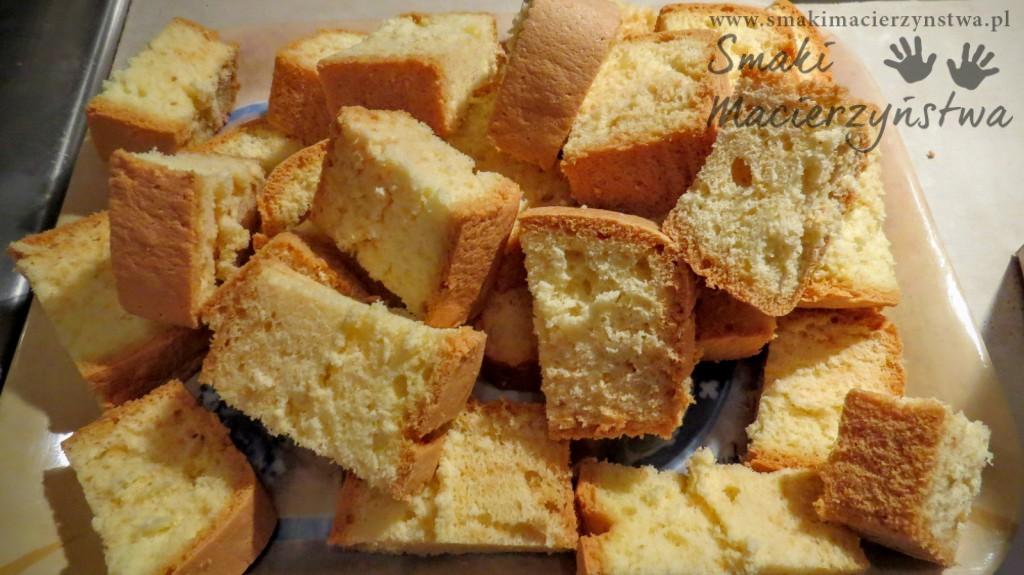 6. Wystudzony biszkopt pokroić na małe prostokąty (około 6×4 cm).