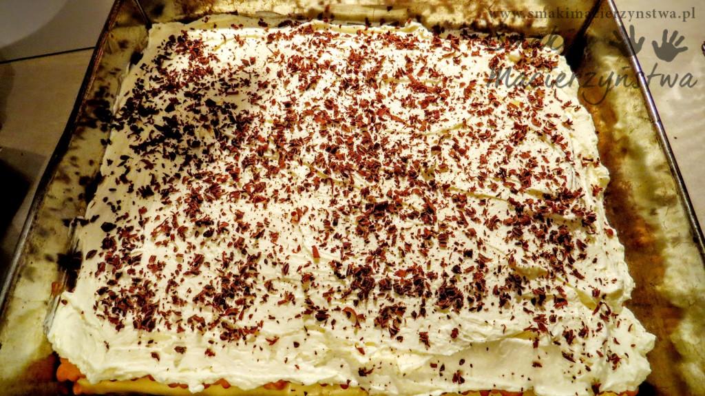 - Na bitą śmietanę zetrzeć gorzką czekoladę.
