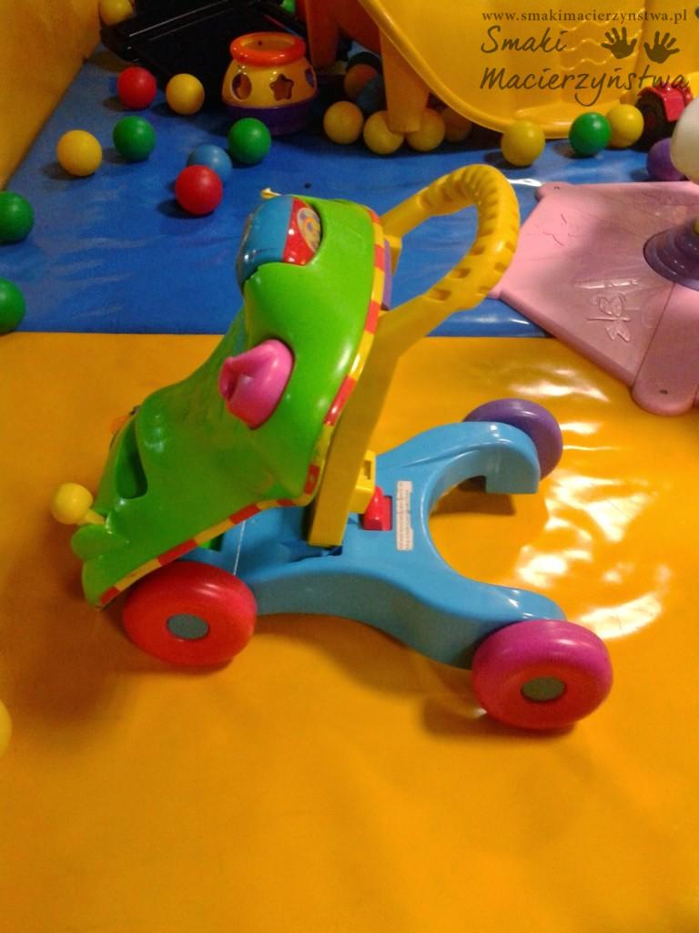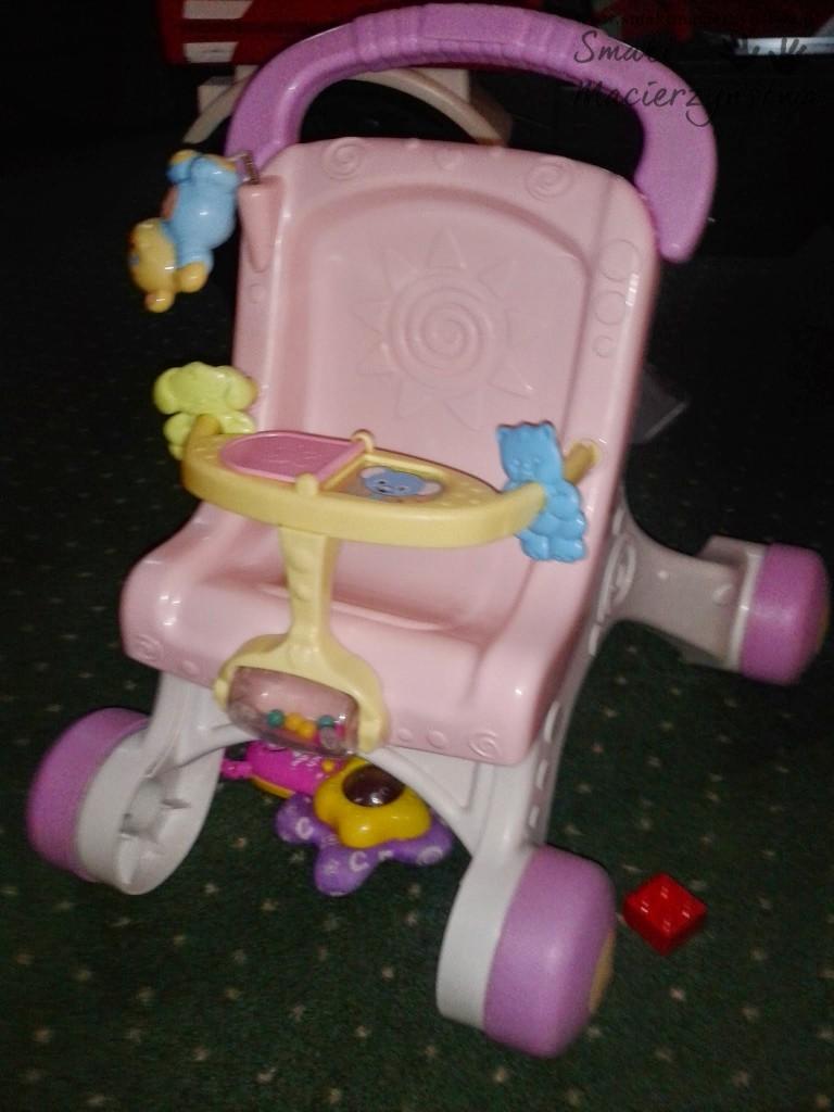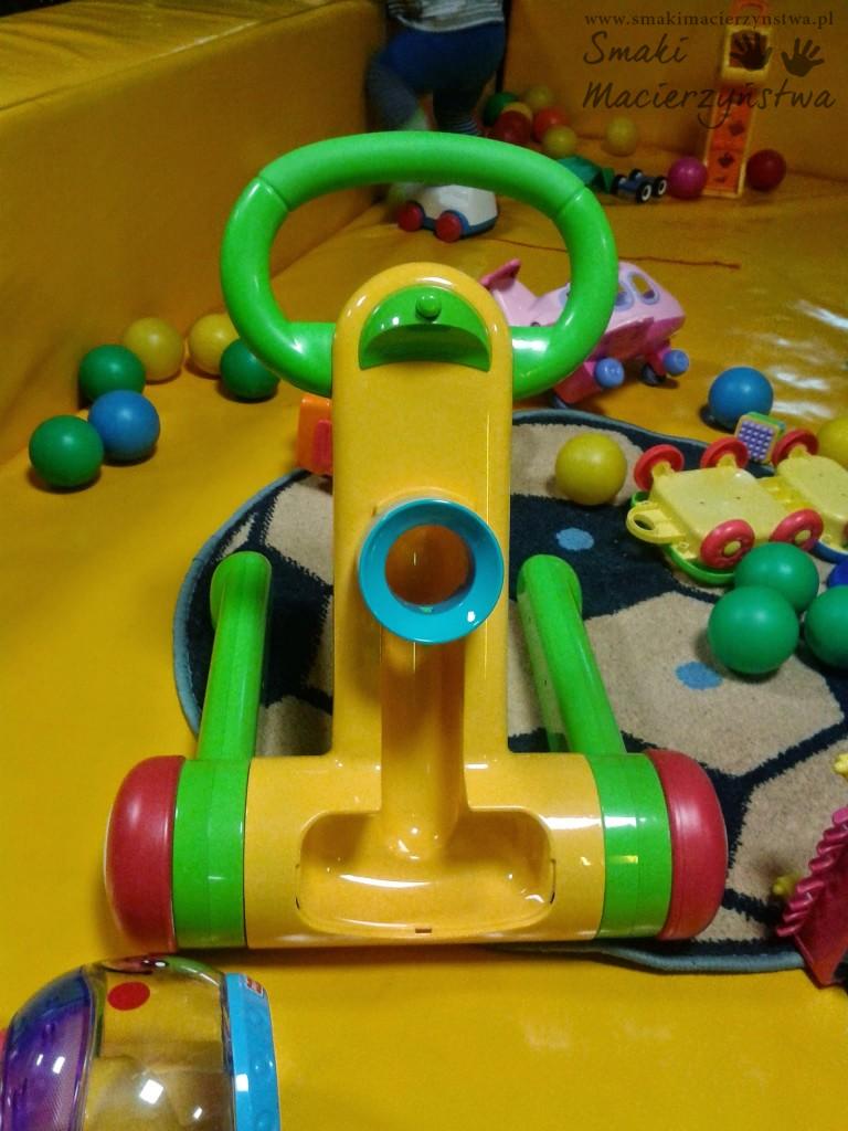 Pchacz łączy w sobie dwie funkcje – pomaga dziecku przy stawianiu pierwszych kroków, ale zanim to nastąpi i również jak już nasze dziecko będzie samodzielnie chodziło może służyć jako stolik edukacyjny, miejsce do zabawy. Pchacz moim zdaniem jest dobrym urządzeniem do nauki chodzenia ponieważ dziecko zaczyna korzystać z jego funkcji dopiero wtedy kiedy jest na to gotowe. Kiedy jest w stanie samodzielnie podążać za odjeżdżającą mu zabawką czyli umie angażować do tego obie nóżki. Dla rodziców, którzy się obawiają, że zanim dziecko jeszcze będzie chciało pokonywać jakieś odległości przy pomocy pchacza, najzwyczajniej w świecie będzie chciało się o niego podpierać i podnosić to pragnę zaznaczyć, że są modele pchaczy które posiadają blokadę kółek więc nie ma obaw, że pchacz odjedzie sam, a dziecko wyląduje nam buzią o podłogę. Wiadomo, że nauka chodzenia przy tym urządzeniu wymaga od nas – rodziców więcej uwagi bo w przeciwieństwie do chodzika nie ma po bokach żadnych zabezpieczeń, ale dzięki temu dziecko uczy się prawidłowo upadać i podnosić się.