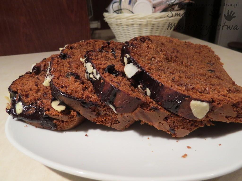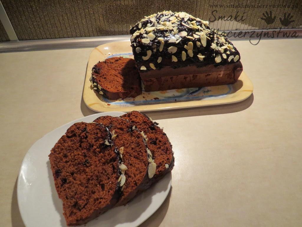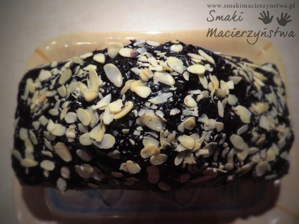 5. Lekko ostygnięte ciasto oblewamy polewą. Można posypać również migdałami w płatkach.