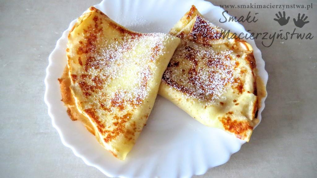 - Farsz wykładamy na naleśniki i zawijamy w koperty. Delikatnie podsmażamy najlepiej na maśle. Dla smaku można jeszcze z góry posypać cukrem pudrem.